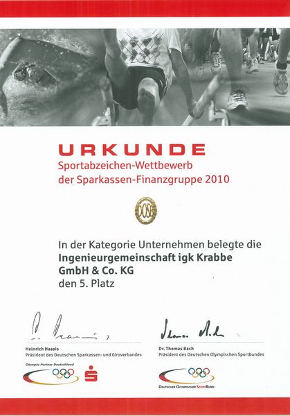 Im bundesweit durchgeführten "Sportabzeichen-Wettbewerb, Kategorie Unternehmen" des Deutschen Olympischen Sportbundes und der Sparkassen-Finanzgruppe hat igk Krabbe im Jahr 2010 den 5. Preis und in den Jahren 2011 und 2012 jeweils den 4. Preis erhalten.